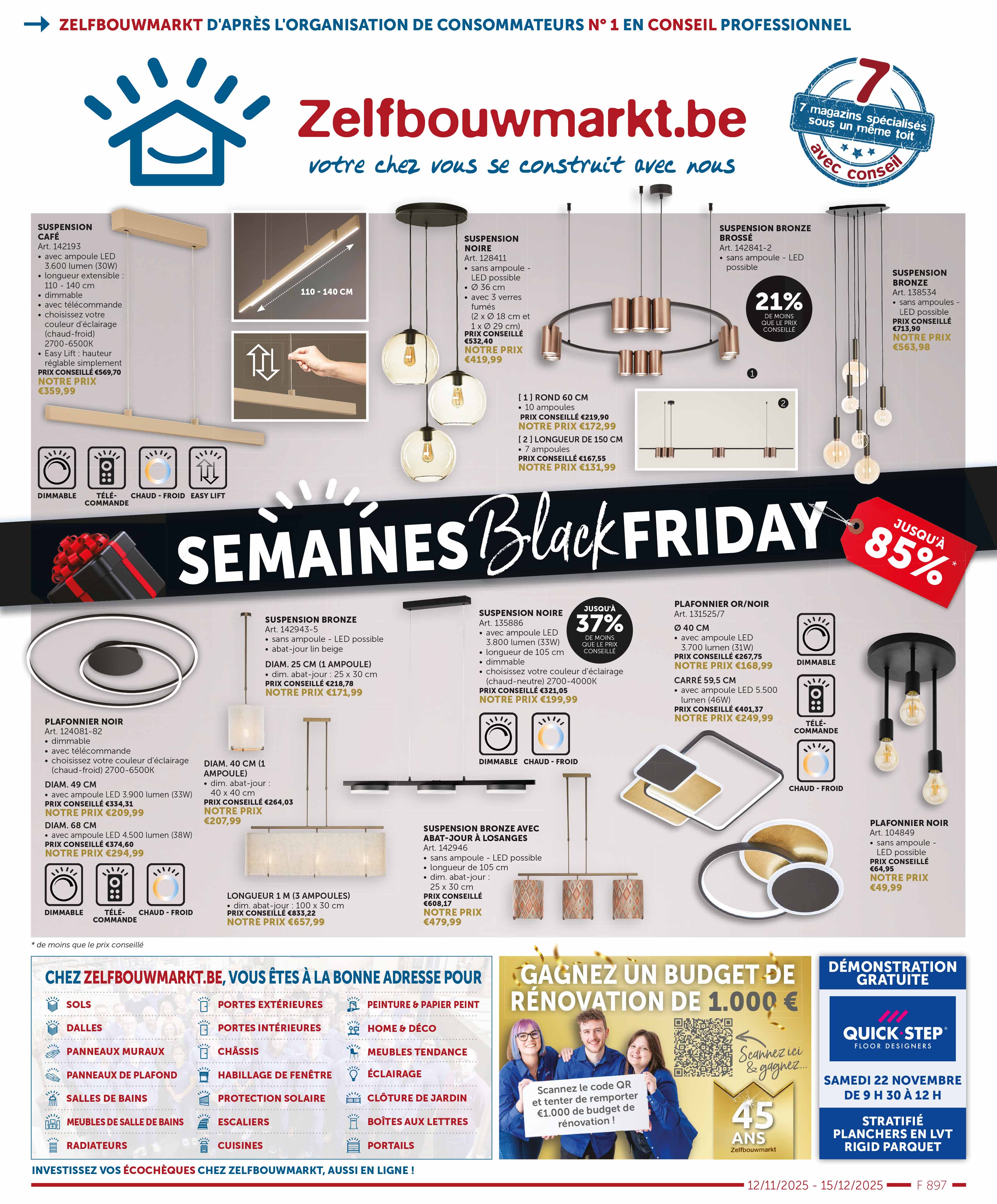 Découvrez les dernières dépliantes et restez informé de nos promotions actuelles, de nos remises saisonnières et de nos offres spéciales ! Vous trouverez ici tout ce dont vous avez besoin pour votre prochain projet de (re)construction. Feuilletez nos brochures et découvrez les meilleures offres sur toutes sortes de produits d'intérieur, meubles de salle de bain, portes intérieures, cuisines, carrelages, et bien plus encore.