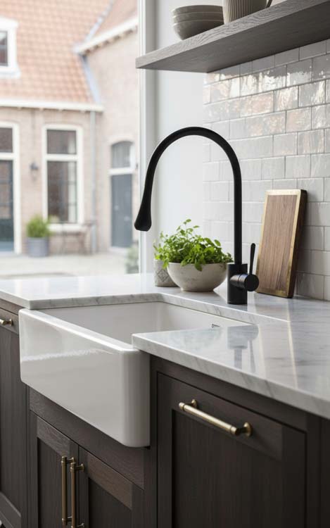 De collectie zwarte wastafelkranen en keukenkranen in een matte afwerking wordt steeds groter door de toenemende populariteit.